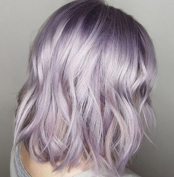 Tóc màu tím pha bạch kim này được mệnh danh là style chất chơi bởi nó giúp nàng trông thời thượng và bạn cũng phải đánh đổi để có được mẫu tóc này. Phái đẹp sẽ phải tẩy toàn bộ mái tóc để nhuộm được màu tím bạch kim do đó sau khi nhuộm, bạn phải chăm sóc cực cẩn thận để tránh tình trạng tóc yếu, gãy rụng và xơ rối.