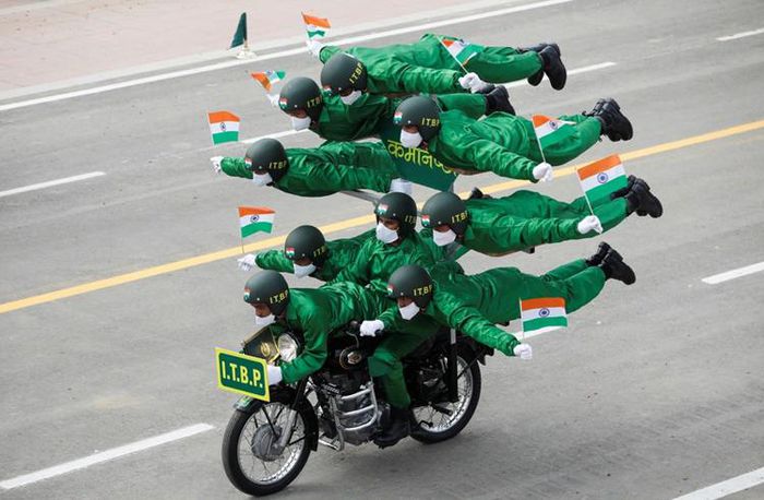 Đội trình diễn trên xe mô tô của cảnh sát Ấn Độ. Ảnh: Reuters