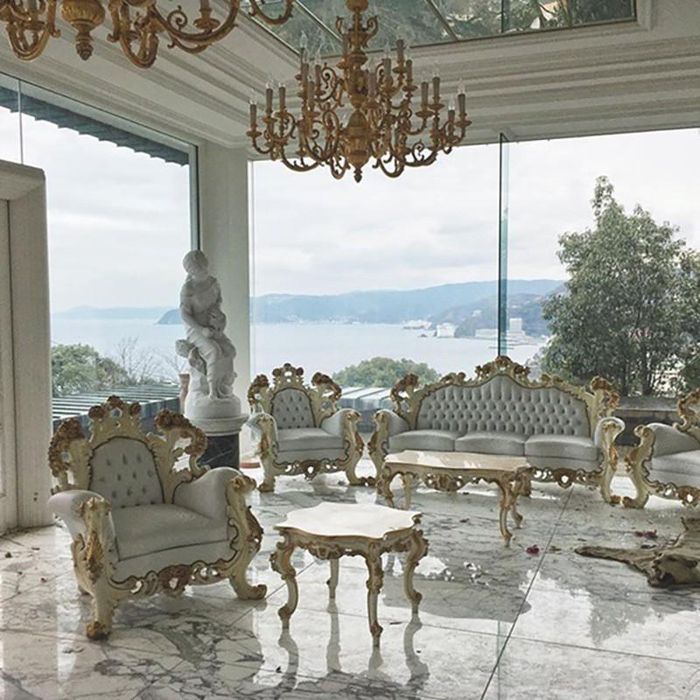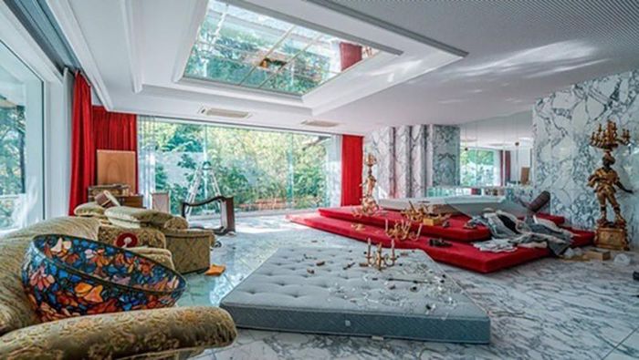Dinh thự ước tính có trị giá 200 triệu USD, có hướng nhìn ra biển, là nơi vị tỷ phú trưng bày bộ sưu tập nghệ thuật xa xỉ trị giá hàng trăm triệu USD của mình. Bên trong căn nhà là khung cảnh hoang tàn, đổ nát, đồ đạc vương vãi.