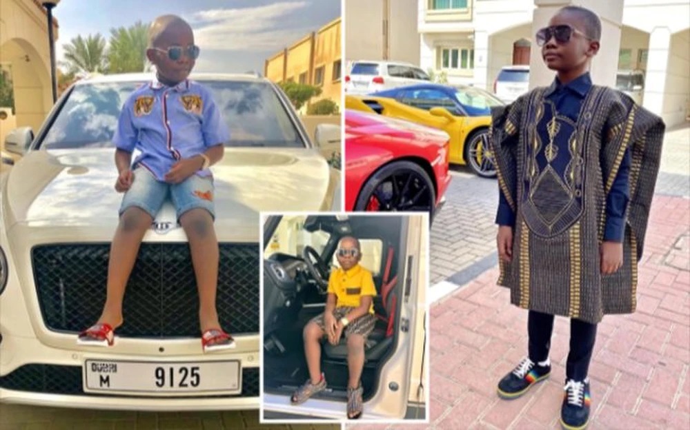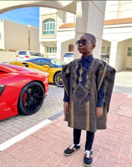 Một lần khác, Mompha Junior đăng ảnh mặc đồ hiệu, tạo dáng trước một chiếc Lamborghini Aventador màu đỏ kèm chú thích: “Chúc mừng sinh nhật tôi”. Ngoài ra, cậu bé còn sở hữu một chiếc Ferrari màu vàng, hiện đang đỗ tại một trong những dinh thự sang trọng của gia đình ở Dubai.