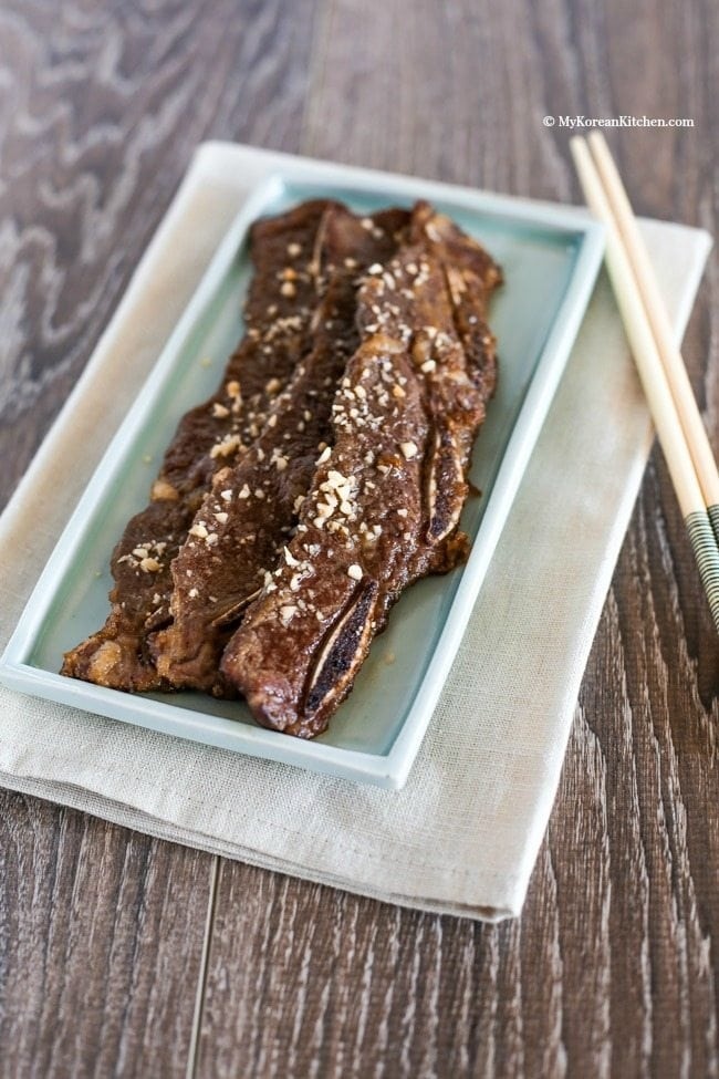 Đây là một trong những loại thịt BBQ Hàn Quốc được mọi người yêu thích. Sườn ḅ nướng được cắt qua xương sườn, thường để lộ ra ba mắt xương sườn. Sườn dễ ướp và chế biến nhanh.
