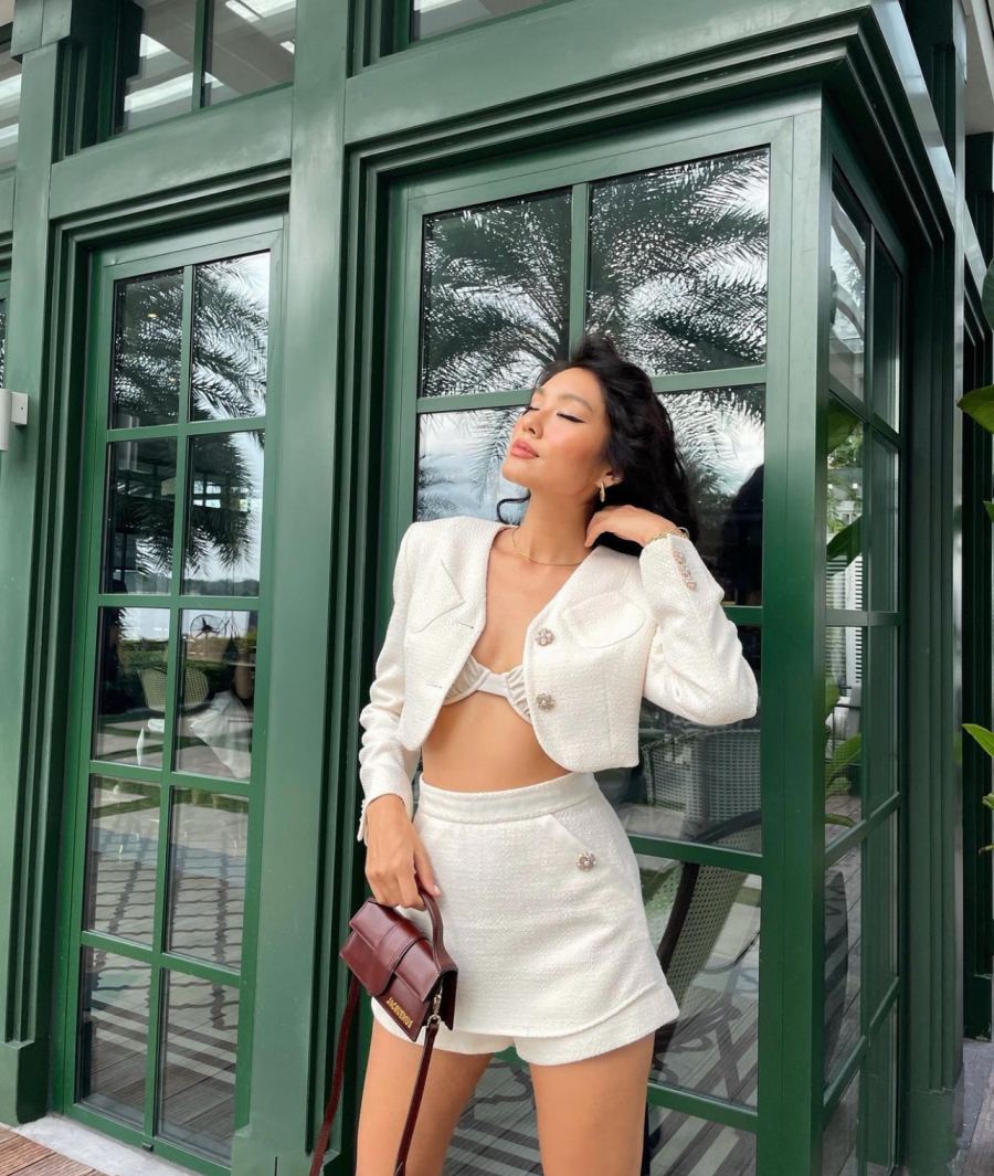 Thảo Nhi Lê luôn ứng dụng công thức lên đồ tông xuyệt tông. Chọn mặc thêm áo khoác ngoài khoe vẻ đẹp nửa kín nửa hở càng thu hút người nhìn, không bị phô vì lộ cơ thể quá nhiều.