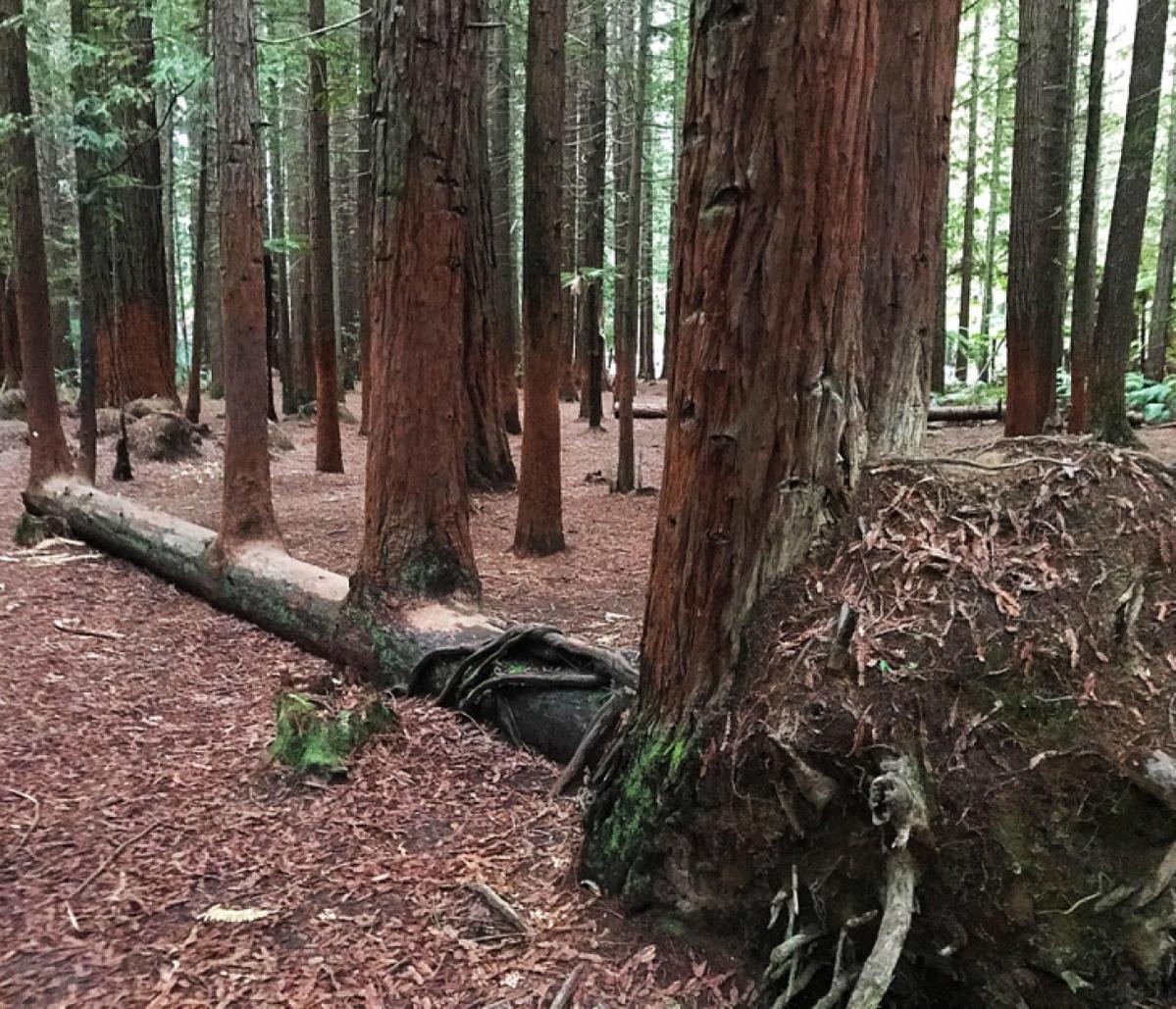 Cái cây này đã đổ xuống và có 4 cái cây khác mọc lên từ nó.