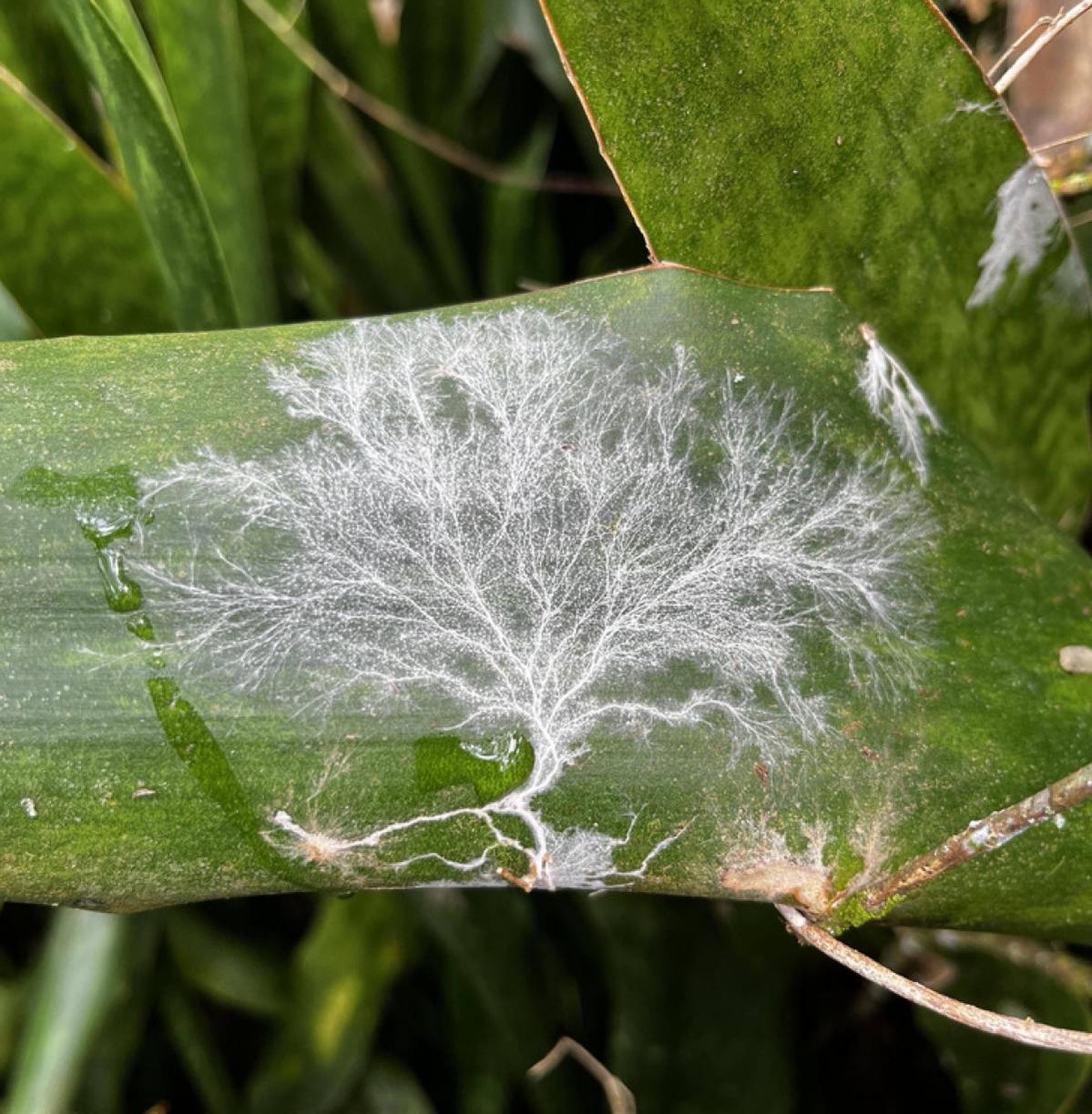 Nấm phát triển trên lá cây với hình dạng không khác gì một cây cổ thụ.