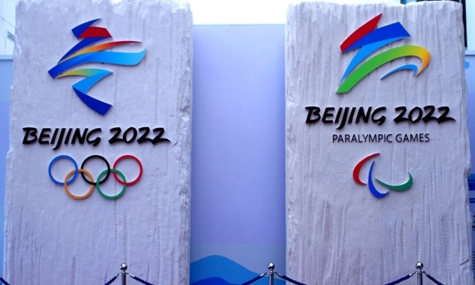 Biểu tượng Olympic và Paralympic Bắc Kinh 2022 dựng tại Trung Quốc. Ảnh: Reuters.