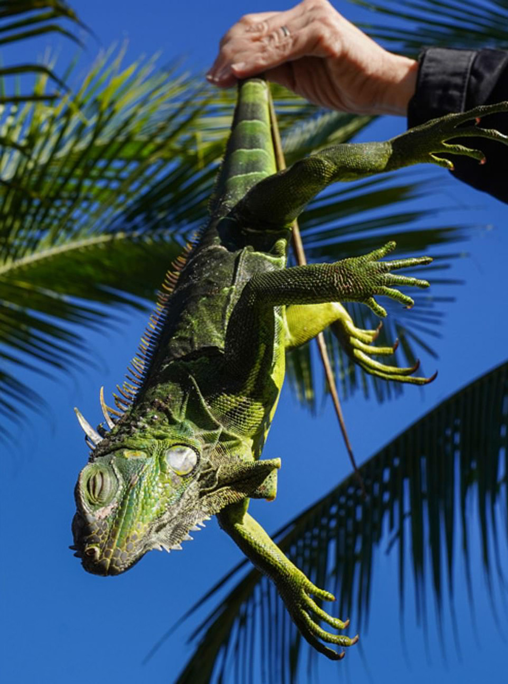 Rồng Nam Mỹ rơi khỏi cây khi bang Florida trải qua thời tiết lạnh giá nhất trong hơn một thập kỷ. Ảnh: Daily Mail