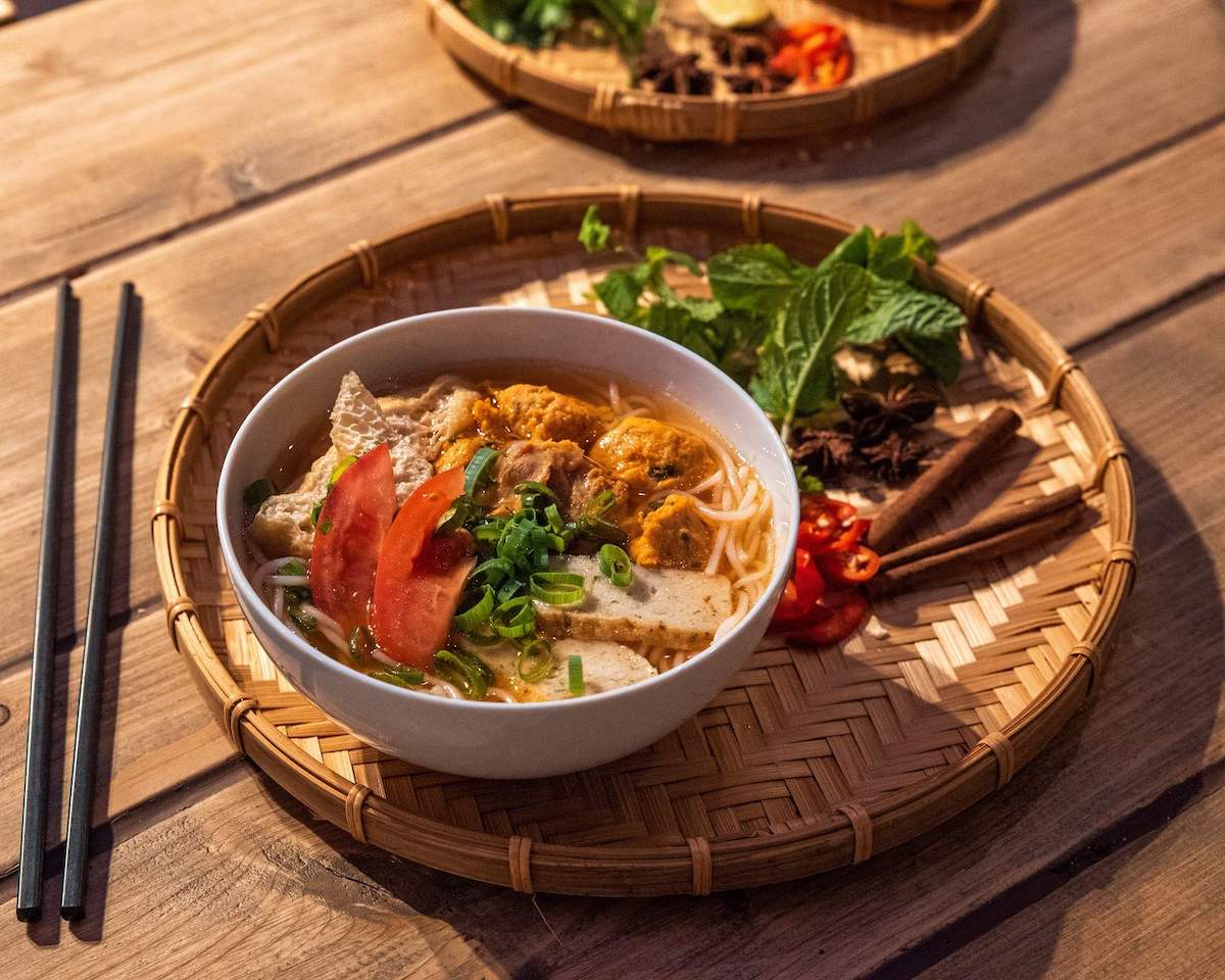 Bên cạnh ngôi sao của thực đơn là món phở Hà Nội, nhà hàng còn được biết đến với đa dạng món chay như nem chay hay phở chay với đậu hũ và nấm.