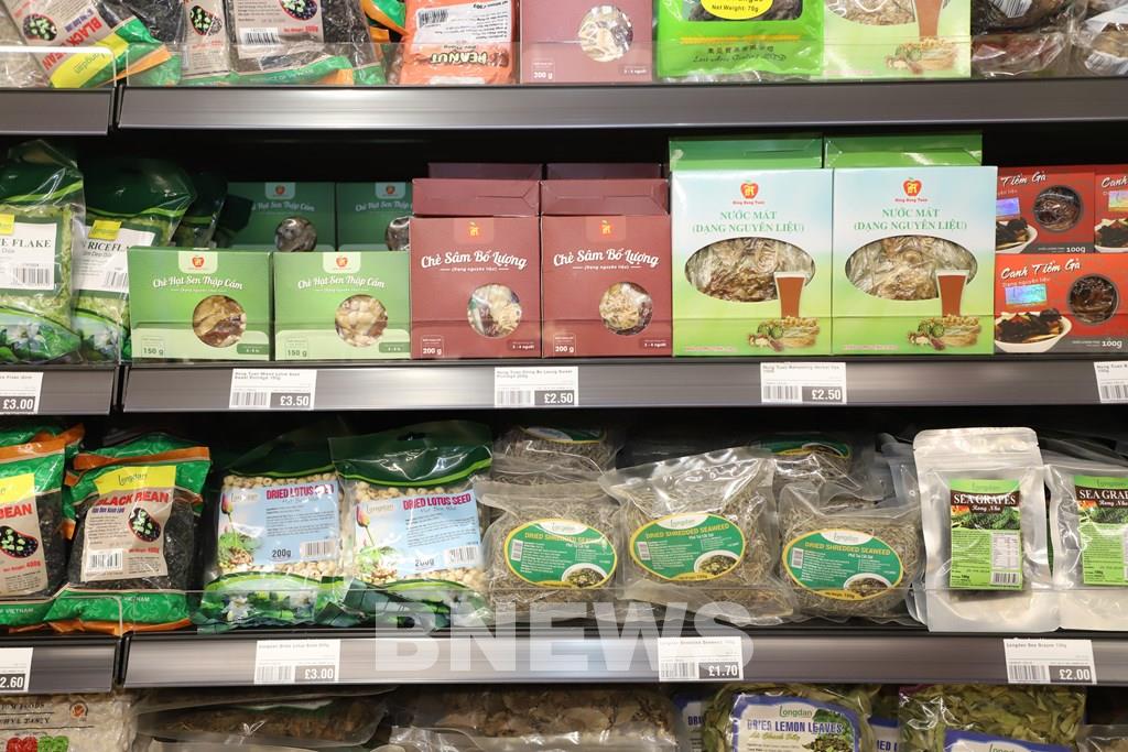 Nhiều mặt hàng nông sản của Việt Nam được bày tại siêu thị Longdan để phục vụ người tiêu dùng thành phố Milton Keynes. Ảnh: Đình Thư, PV TTXVN tại Vương quốc Anh.