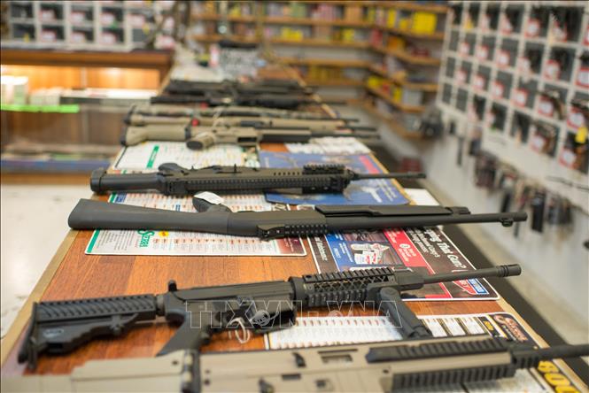 Các loại súng được bày bán tại cửa hàng ở Roseburg, bang Oregon, Mỹ. Ảnh: AFP/TTXVN