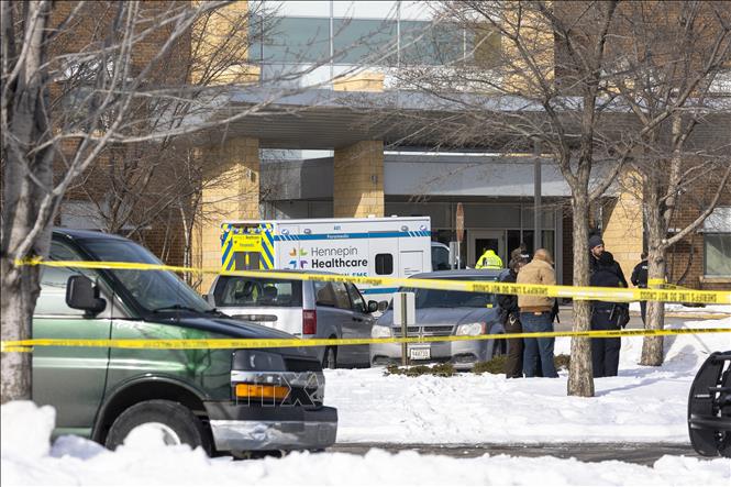 Cảnh sát được triển khai tới hiện trường vụ xả súng ở Trung tâm Giáo dục miền Nam, Richfield, Minnesota, Mỹ, ngày 1/2/2022. Ảnh: AFP/TTXVN