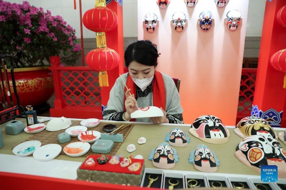 Một thợ thủ công thể hiện nghệ thuật vẽ mặt nạ kinh kịch.
