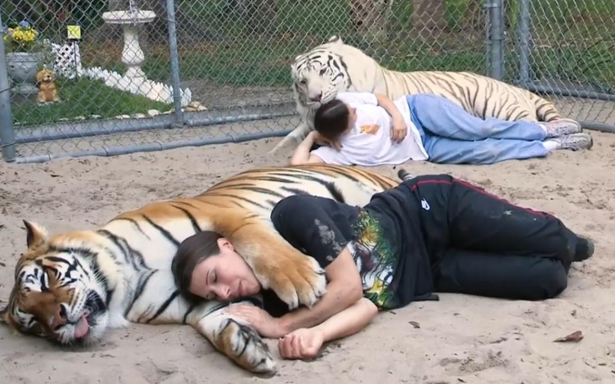 Quá ấn tượng gia đình Mỹ yêu thương chăm sóc 2 mãnh hổ như con đẻ. Một gia đình người Mỹ và các tình nguyện viên hẳn phải rất can đảm và yêu thương loài hổ thì mới dám ở sát bên hổ để chăm sóc chúng, nô đùa, âu yếm chúng mà không hề có bất cứ vật gì ngăn cách ở giữa để bảo vệ họ.