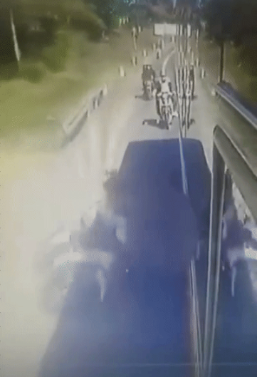 Theo như trong đoạn clip đã được ghi lại. Hai nam thanh niên khi đang di chuyển bằng xe máy đã bất ngờ mất lái, loạng choạng và ngã ra giữa đường. Không may tại thời điểm đó có khá nhiều phương tiện giao thông di chuyển trên đường. Một chiếc xe ô tô khách đi cùng chiều sát đó đã không kịp dừng lại và cán qua người điều khiển xe máy gặp nạn.