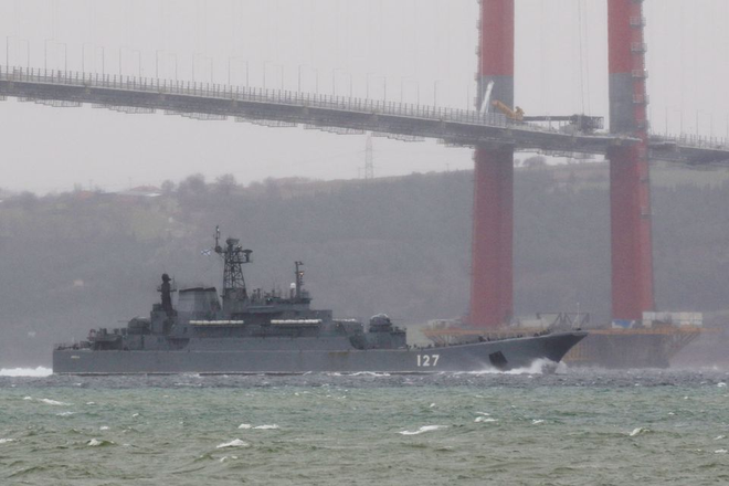 Hãng tin Reuters đưa tin, biên đội tàu đổ bộ cỡ lớn của Hải quân Nga đã bắt đầu đi qua eo biển Bosphorus và Dardanelles. Động thái này khiến giới chức phương Tây như "ngồi trên lửa" trong thời điểm căng thẳng Ukraine chưa hạ nhiệt.