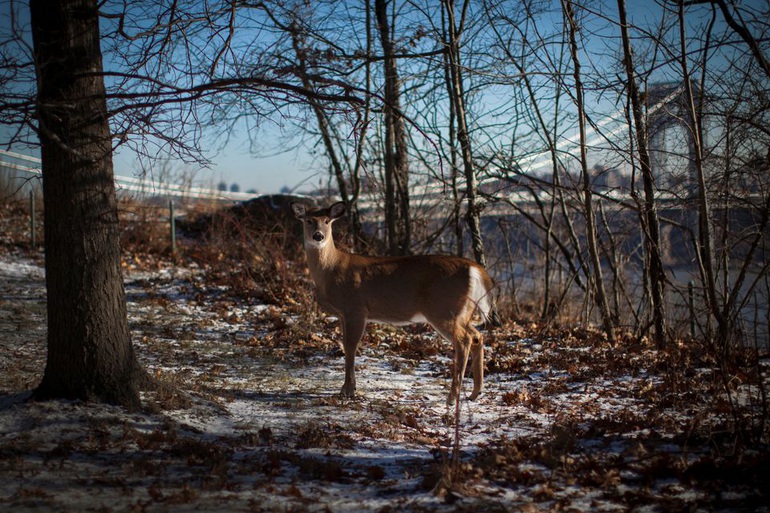 Hươu đuôi trắng ở Fort Lee, New Jersey, Mỹ (Ảnh: Reuters).