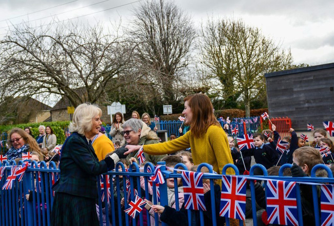 Vào ngày 8/2, bà Camilla lần đầu xuất hiện trước công chúng với vị thế là Vương hậu mới của hoàng gia Anh sau này. Bà đã có chuyến thăm đến trường tiểu học Roundhill ở Bath. Tại đây, vợ Thái tử Charles đã bất ngờ nhận được sự cổ vũ nồng nhiệt của người dân. Nhiều người đã hô vang: "Hoàng hậu Camilla!" khi bà xuất hiện và giao lưu với mọi người.