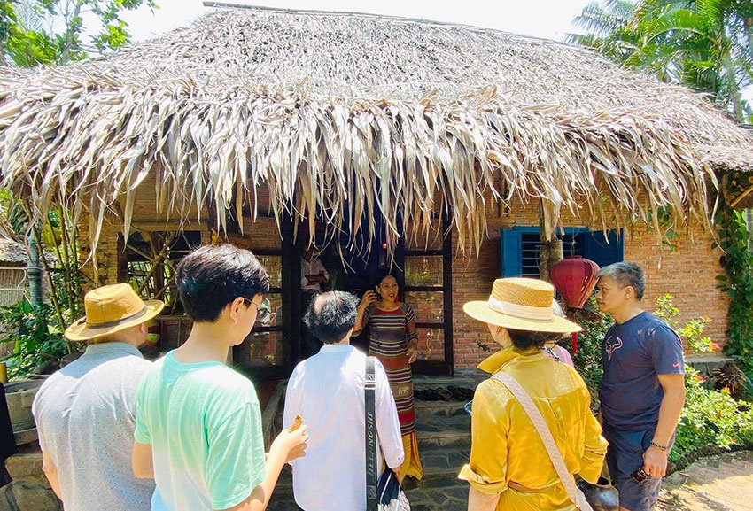 Cũng như bao căn nhà lá ngày trước ở làng quê Quảng Nam, nhưng trang trí và vật dụng bên trong căn nhà bàng bạc âm hưởng văn hóa Champa. Chủ nhà sẽ nói về nghi thức thánh tẩy truyền thống trước khi vào đền tháp, Sang mưgik (nhà thờ của người Chăm theo đạo Bani), du khách rửa tay, rửa chân và súc miệng 3 lần từ lu nước ngoài hiên trước khi bước vào ngôi nhà. Không chỉ có du khách trong nước, nơi đây từng đón nhiều đoàn khách nước ngoài (thời điểm chưa bùng phát dịch).