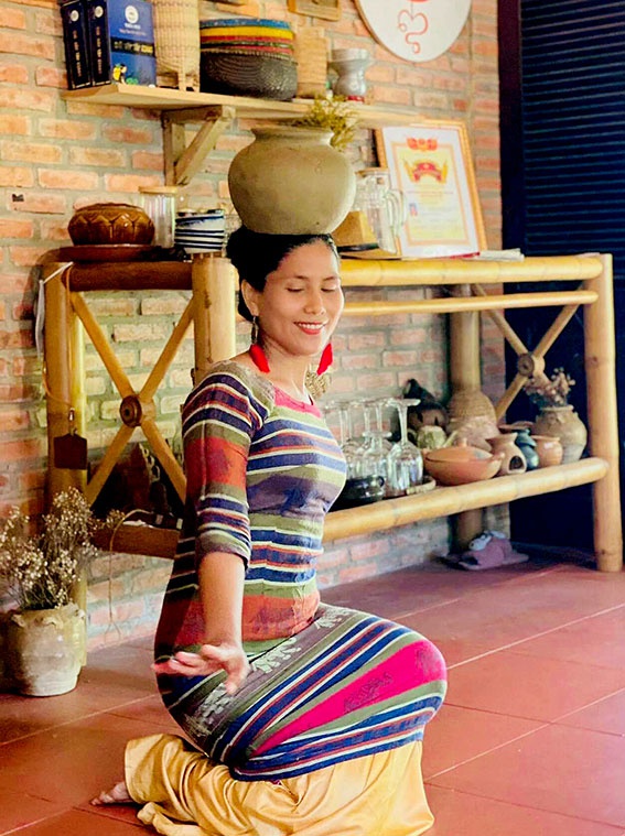 Tôi không khỏi ngạc nhiên bởi Champa Amaravati House chỉ có duy nhất phụ nữ Chăm làm tất tần tật, từ liên hệ, đặt lịch, trò chuyện với du khách, ca múa, nấu ăn... Đấy là chị Kiều Maily, người từ làng Chăm Palei Papblap Birau, còn gọi là Palei Phước Nhơn, ở xã Xuân Hải, H.Ninh Hải (Ninh Thuận). Sau khi tốt nghiệp, với lòng say mê văn hóa và lịch sử, chị rong ruổi những nơi có làng Chăm, qua tận các làng Chăm ở Campuchia, đi nhiều làng quê ở Quảng Nam. Chị là hội viên Hội VHNT các dân tộc thiểu số Việt Nam, hội viên Hội Nhà văn Việt Nam. Chị có sách viết về quê hương Palei Phước Nhơn của tôi, có truyện thiếu nhi Em đi lễ hội (song ngữ Việt - Anh) và đang viết về trang phục Chăm. Năm 2017, chị được một tổ chức phi chính phủ Nhật Bản mời biểu diễn múa và trình bày ẩm thực Chăm.