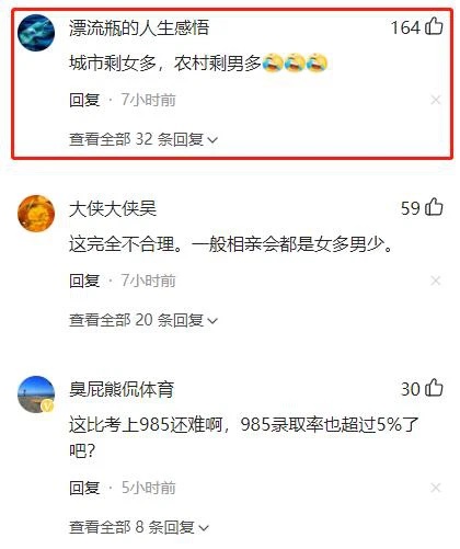 Khi nhìn thấy cảnh tượng 100 nam tranh 5 nữ tại buổi hẹn hò, nhiều cư dân mạng đã nói: "Thành phố thừa nhiều phụ nữ, nông thôn thừa nhiều đàn ông!"