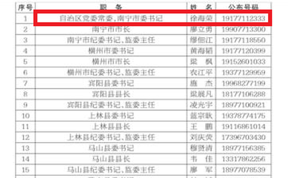 Ngày 7/2, ngày làm việc đầu tiên sau Tết Nguyên đán 2022, thành phố Nam Ninh, tỉnh Quảng Tây, Trung Quốc đă công bố số điện thoại cá nhân của các lănh đạo địa phương, bao gồm Bí thư thành ủy và Bí thư Ban Kiểm tra Kỷ luật địa phương.