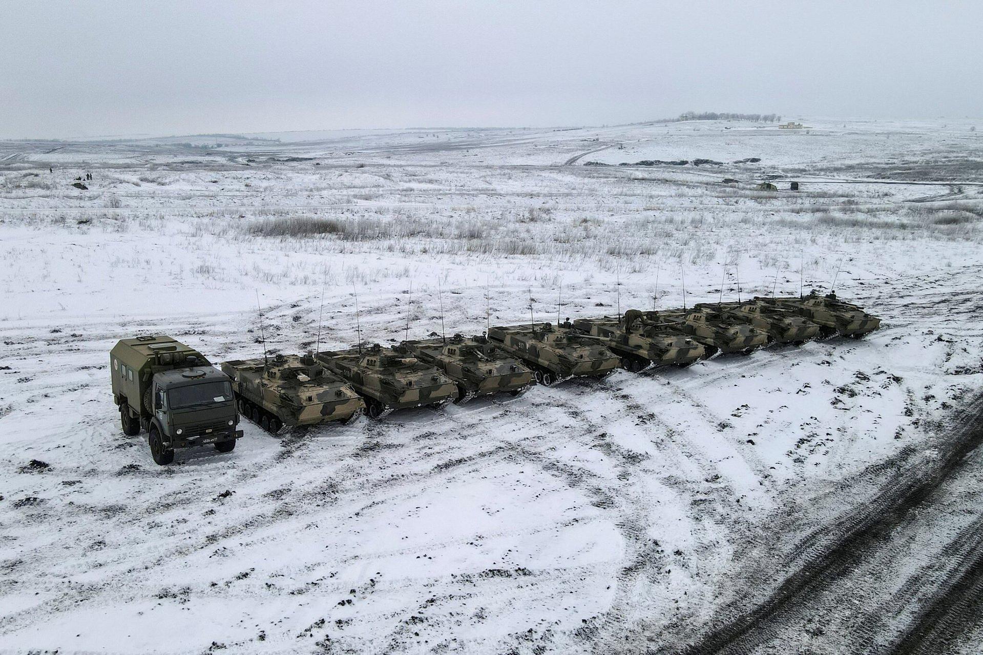 Xe bọc thép của Nga tại vùng Rostov vào cuối tháng 1. Ảnh: Reuters.