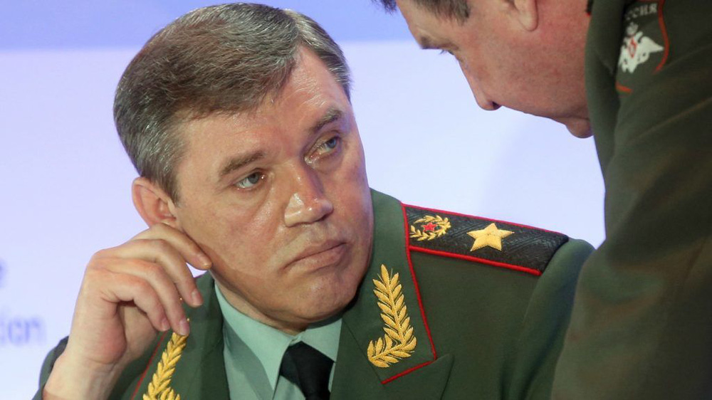 Tổng tham mưu trưởng và Thứ trưởng thứ nhất Bộ Quốc phòng Valery Gerasimov (trái) nói chuyện với một sĩ quan trước khi khai mạc Hội nghị Matxcơva III về An ninh quốc tế tại Matxcova, Nga, ngày 23 tháng 5 năm 2014. Ảnh: EPA