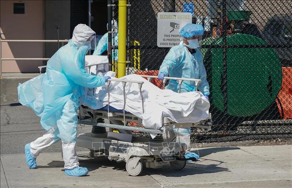 Chuyển thi thể bệnh nhân COVID-19 tại bệnh viện ở New York, Mỹ. Ảnh: AFP