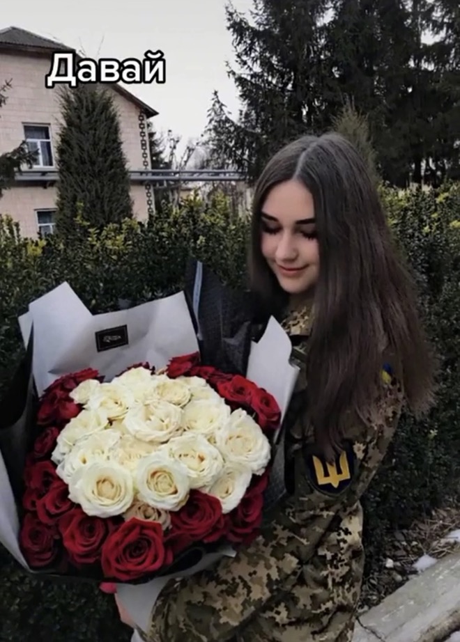 Iryna Greytsarovska, một nữ binh sĩ Ukraine mô tả trên trang Tiktok cá nhân: “Ukraine trên hết”. Cô chia sẻ nhiều video quay cảnh ḿnh hát, nhảy múa trong bộ quân phục.
