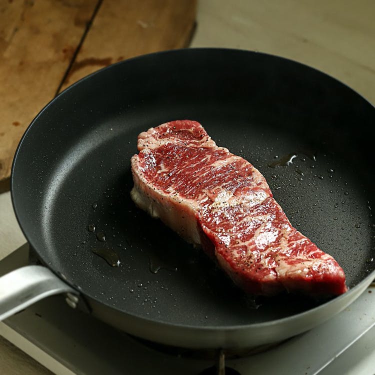 Đun nóng chảo, cho miếng thịt bò đã ướp gia vị vào nướng trong khoảng 1,5 phút.