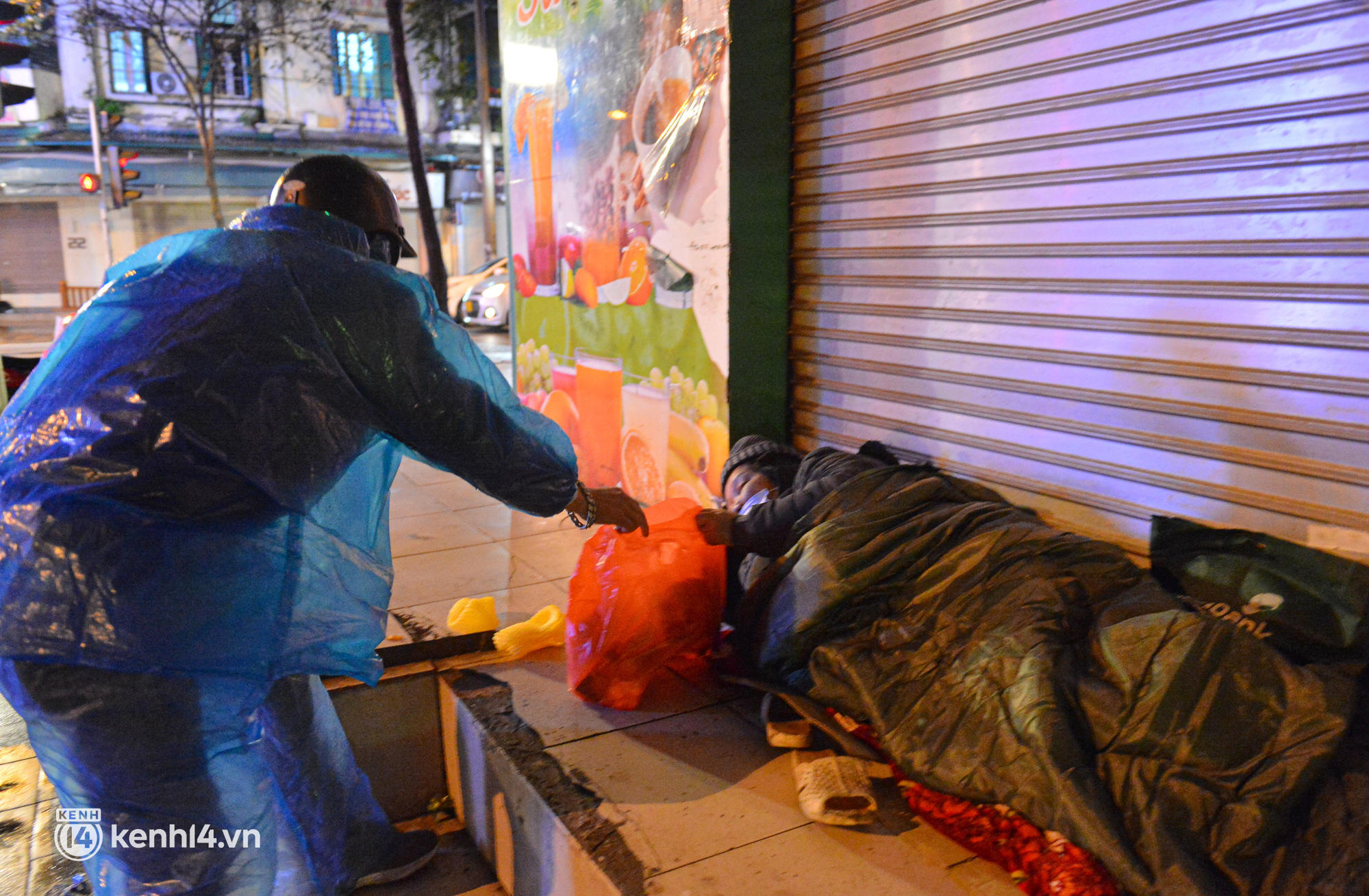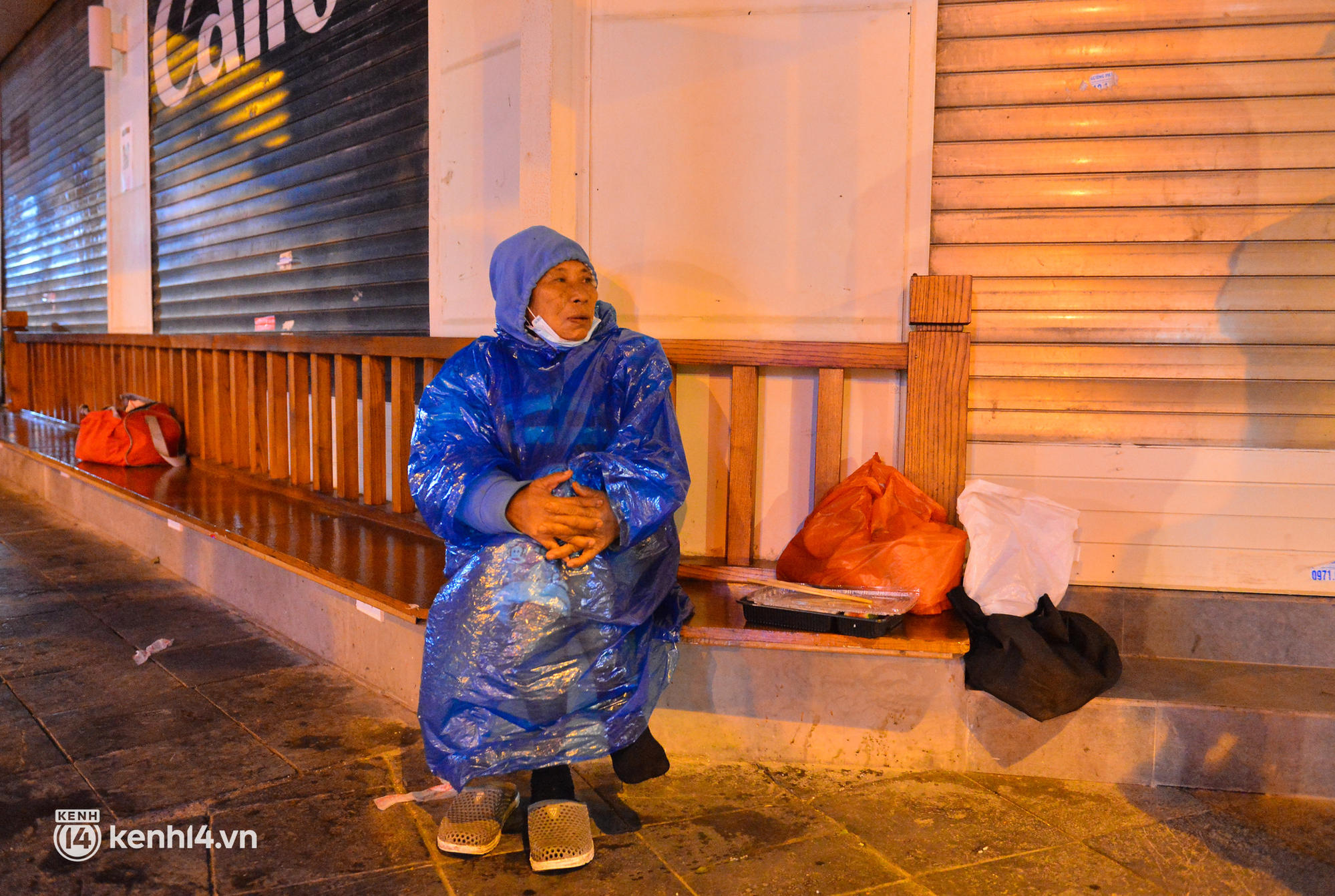 23h đêm trên phố Tràng Thi, Phủ Doãn, những người vô gia cư bắt đầu kéo chăn, nệm, ngủ trên vỉa hè. Trong số họ, một số người không có chăn, gối, họ đành chỉ mặc áo mưa, ngồi dúm dó một góc để tránh rét.