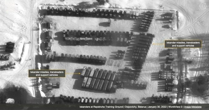 Các tổ hợp Iskander của Quân đội Nga tại Belarus vào cuối tháng 1 (Ảnh: Maxar Technologies).