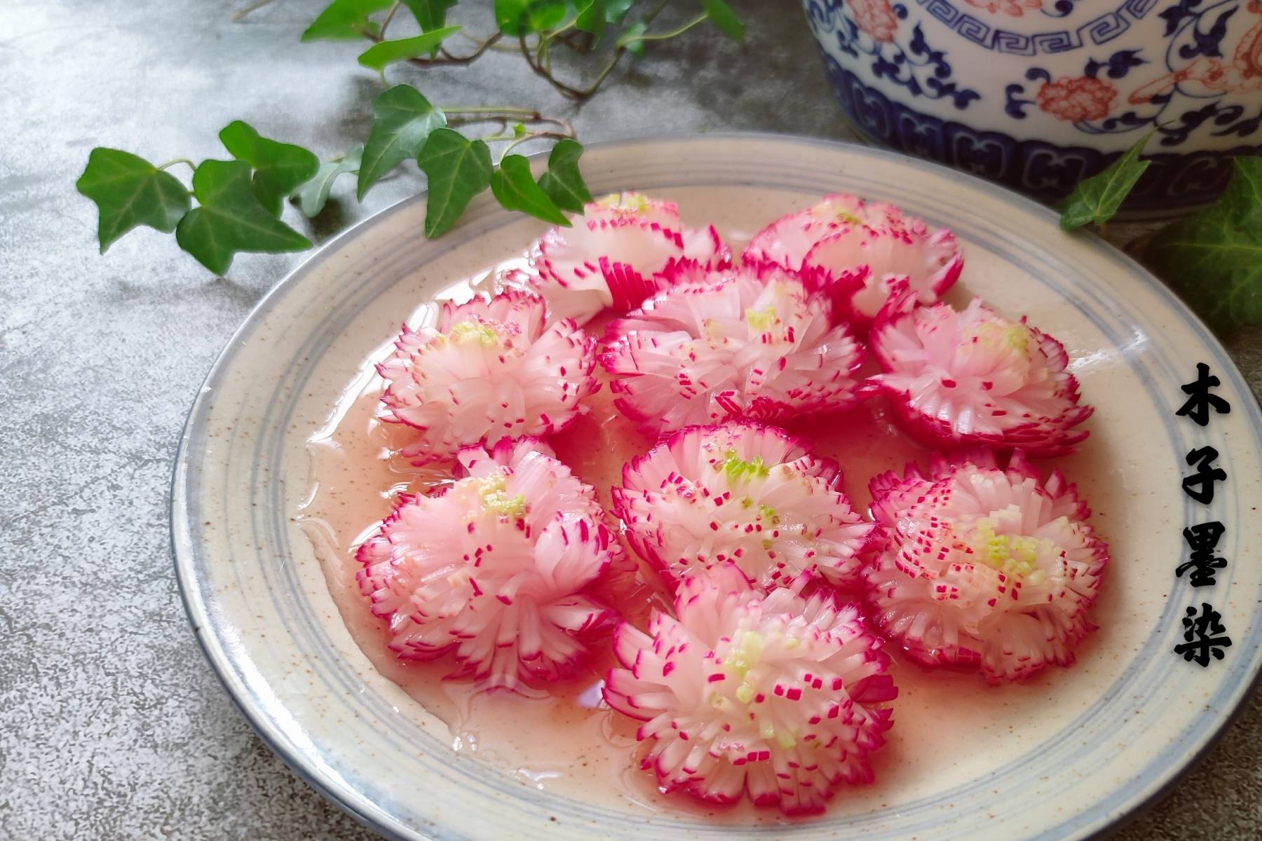 Chọn củ cải đỏ để món ăn trông được đẹp mắt hơn. Cắt củ cải thành miếng nhỏ tuỳ thích, có thể tỉa thành hình bông hoa như hình, ướp với muối trong 20 phút, rồi rửa lại với nước lạnh, để ráo nước. Nấu nước giấm đường, ước lượng vừa miệng ăn, đun sôi để nguội. Cuối cùng, đổ nước ngâm vào củ cải, ngâm 3 – 4 tiếng là có thể ăn được.