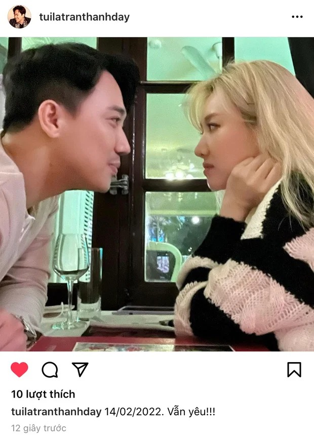 Ngày 14/2/2022, vợ chồng Trấn Thành và Hari Won cũng khoe ảnh "sống ảo" như bao người dịp Valentine. Cả hai tạo dáng cực tình, mặt đối mặt, mắt nhìn nhau chuẩn vợ chồng son. Hơn nửa thập kỷ sống chung nhà, Trấn Thành dành vỏn vẹn 2 chữ nói về tình cảm của mình dành cho bà xã: "Vẫn yêu".