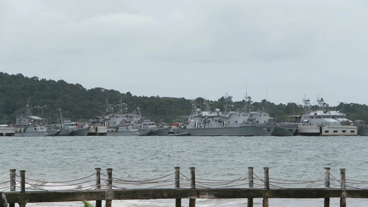 Ảnh tư liệu chụp ngày 26/07/2019: Chiến hạm Cam Bốt neo đậu tại Căn Cứ Hải Quân Ream, gần Sihanoukville, miền tây nam Cam Bốt. AP - Heng Sinith