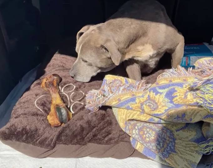 Zoey được cho ăn, nằm trên chăn ấm sau khi được nhân viên chăm sóc động vật đón về. Ảnh: Phòng cảnh sát quận San Joaquin