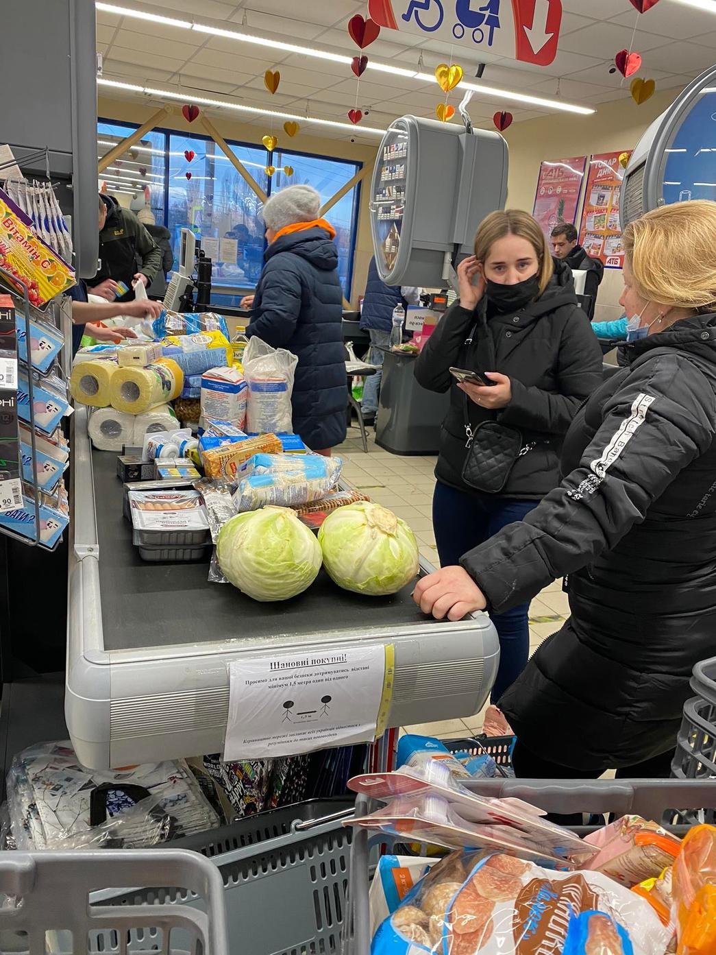 Ông Hồ Sỹ Trúc (Phó Chủ tịch Hội người Việt tại Kiev, Ukraine) cho biết, khoảng 7 giờ sáng nay, khi thức dậy và đọc tin từ báo chí cũng có một số bà con người Việt hoang mang. Ông cũng chuẩn bị ra siêu thị mua một số đồ ăn, thực phẩm dự trữ,... đề phòng tình huống xấu xảy ra. Các cửa hàng, siêu thị xung quanh ông sống vẫn mở bán bình thường nhưng lượng khách đến mua đông hơn so với những ngày trước.