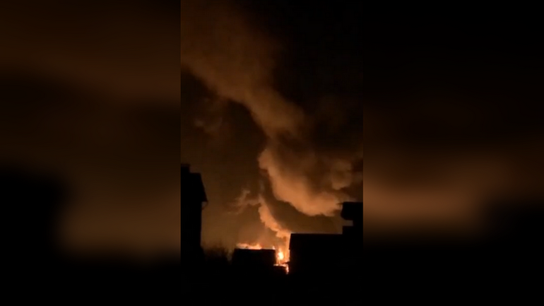 Những hình ảnh và video được chia sẻ trên mạng xã hội cho thấy đám cháy lớn bốc lên trong đêm tại khu vực kho dầu bị trúng tên lửa.