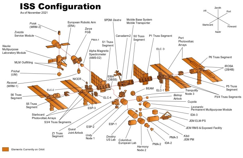 Trạm vũ trụ quốc tế cấu thành từ 16 phần do các quốc gia khác nhau xây dựng, bao gồm Mỹ, Nga, Nhật Bản, Italy và Cơ quan vũ trụ châu Âu. Theo các thỏa thuận ISS, mỗi quốc gia duy trì quyền kiểm soát cách sử dụng các mô-đun của mình.