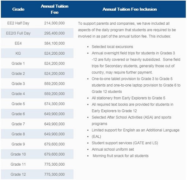 Bảng học phí “trên trời” tại trường Quốc tế TP.HCM (Ảnh: Website ISHCMC)