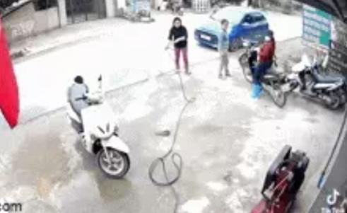 Theo như đoạn camera an ninh ghi lại tình huống giao thông gây chú ý trên nhiều diễn đàn. Tại thời điểm ấy, một người phụ nữ đang đứng rửa xe ở sân. Khi đang điều chỉnh dây bơm, người này lùi ra sát rìa vỉa hè, bất ngờ một chiếc ô tô lao nhanh, sượt qua sống lưng.