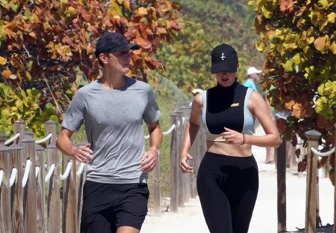 Sáng 5/3, Ivanka, 40 tuổi, được nhìn thấy cùng chồng Jared Kushner chạy bộ dọc bãi biển Miami, tận hưởng ánh nắng ấm áp cuối tuần. Bà mẹ ba con khoe vòng eo đáng ngưỡng mộ khi diện crop top kết hợp quần legging và mũ lưỡi trai, trong khi chồng cô mặc áo thun xám, quần short chạy bộ và cũng đội mũ giống vợ.