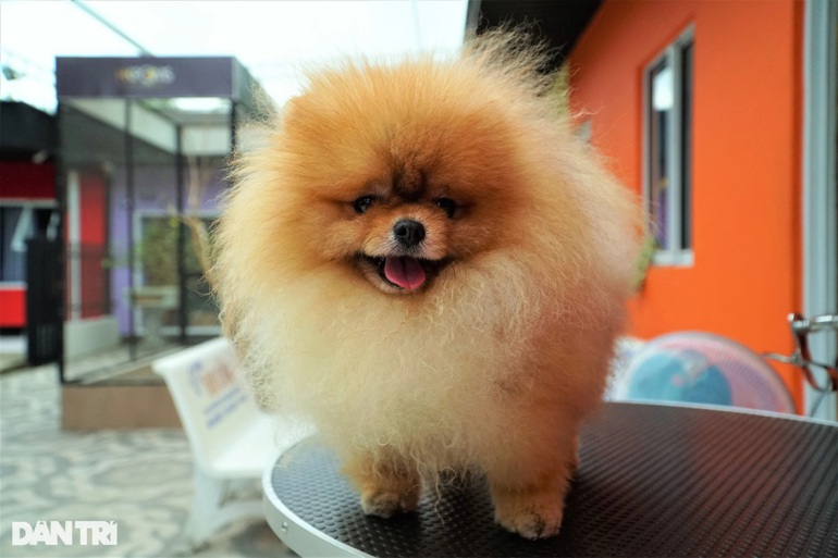 Việc chăm sóc chó Pom đòi hỏi kỹ thuật cao, từ việc "dưỡng" lông, chế độ dinh dưỡng, nhiệt độ, thức ăn, nước uống phải đảm bảo sạch tới việc tạo không gian cho chó thoải mái vận động… để chó ngày càng đẹp hơn. Loài chó này phải ở phòng lạnh từ 20 đến 23 độ, uống nước sạch, ăn hạt nhập từ Pháp (Ảnh: Bảo Kỳ).