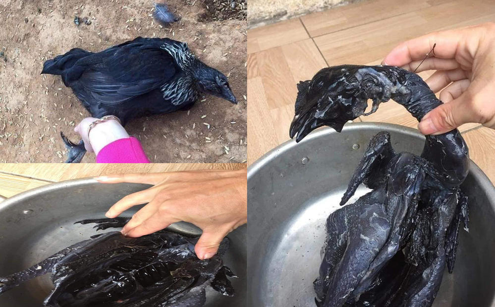 Trên nhóm Facebook Hội Nông dân với gần 375 nghìn thành viên, một thành viên có tên M.T đã đăng tải những hình ảnh về một con gà có màu lông đen. Không những thế, thịt của con gà cũng hoàn toàn đen thui như được nhúng qua nhựa đường.