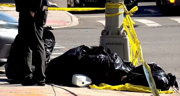 Thi thể bị phân mảnh được tìm thấy trong các túi rác bên ngoài tiệm cầm đồ ở Brooklyn. Ảnh: ABC News.
