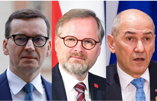 Thủ tướng Ba Lan Mateusz Morawiecki, Thủ tướng Cộng hòa Czech Petr Fiala và Thủ tướng Slovenia Janez Janša. Ảnh: AFP.