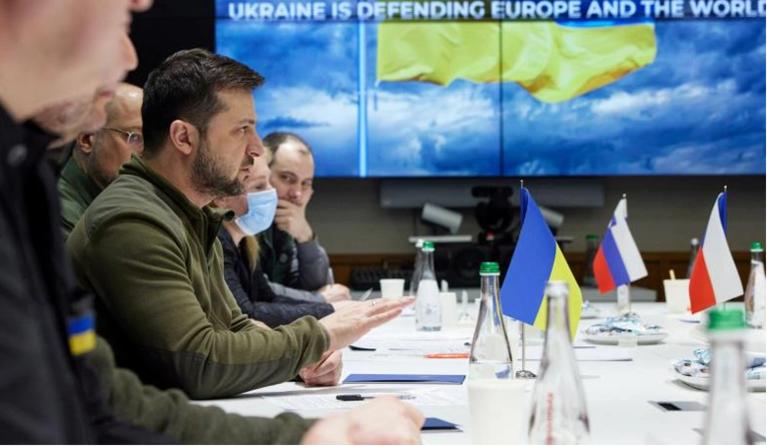Phát biểu trong cuộc gặp với 3 nhà lãnh đạo của các nước châu Âu tại Kiev ngày 15/3, Tổng thống Volodymr Zelensky đã cảm ơn Thủ tướng Ba Lan Mateusz Morawiecki, Thủ tướng Slovenia Janez Jansa và Thủ tướng Séc Petr Fiala vì "sự ủng hộ tuyệt vời" của họ dành cho Ukraine, trong khi "rất nhiều đại sứ khác đã rời Ukraine vì chiến dịch quân sự toàn diện của Nga".