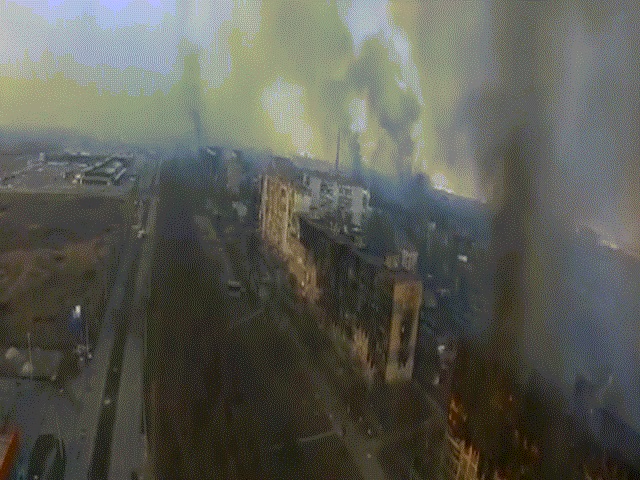 Khu công nghiệp ở thành phố Mariupol xảy ra hỏa hoạn lớn (ảnh: Reuters)