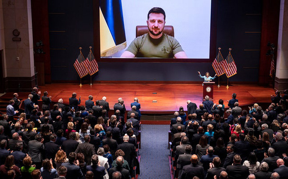 "Tôi yêu cầu đảm bảo rằng người Nga không nhận được một xu nào mà họ sử dụng để sát hại người dân ở Ukraine", ông Zelenskyy nói với Quốc hội Mỹ trong đoạn video trực tuyến.