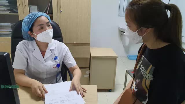 BS Phạm Thị Thảo tư vấn cho bệnh nhân về tình trạng bệnh lý trên da mặt gặp phải sau khi mắc COVID-19. Ảnh: Thu Nguyên