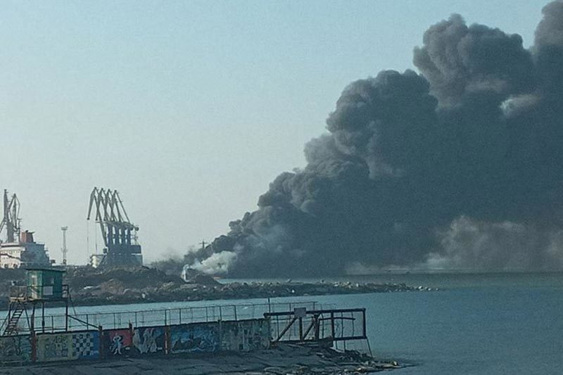 Anton Gerashchenko, cố vấn cấp cao của Bộ Nội vụ Ukraine đã cho đăng tải trên trang Telegram cá nhân một bức ảnh cho thấy khói đen bốc lên cuồn cuộn từ cảng Berdyansk ngày 24/3.